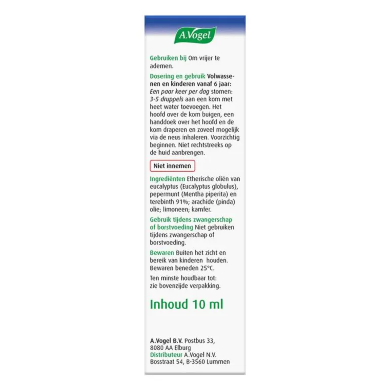 De functie van de neus is om de ingeademde lucht – elke minuut zo’n tien liter – te zuiveren en te verwarmen. Zolang de neus vrij is, gaat dit automatisch. Als je door je mond ademt, dan kun je verschijnselen als een droge mond en een ‘leren’ tong krijgen. A.Vogel Cinuforce Inhalatiedruppels ondersteunt de luchtwegen en helpt om vrijer te ademen door de neus. Cinuforce Inhalatiedruppels bevat onder andere Mentha piperita en Eucalyptus, die al eeuwenlang worden toegepast vanwege hun verzachtende invloed op de luchtwegen.