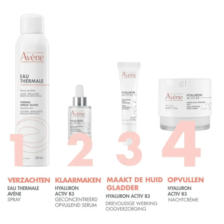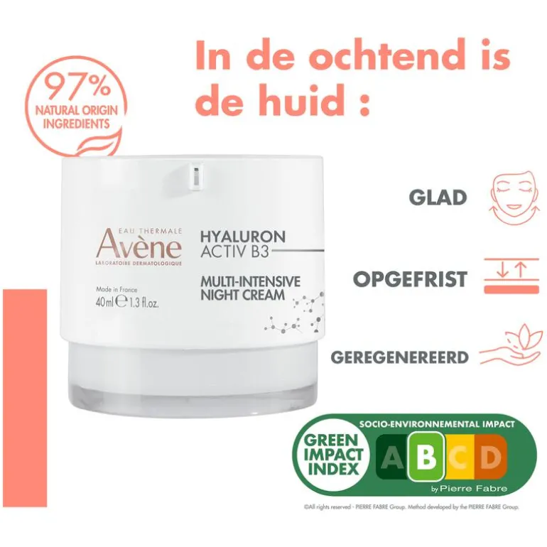 AVENE THERMAL SPRING WATER (AVENE AQUA). CAPRYLIC/CAPRIC TRIGLYCERIDE. GLYCERIN. SQUALANE. BUTYROSPERMUM PARKII (SHEA) BUTTER (BUTYROSPERMUM PARKII BUTTER). CARTHAMUS TINCTORIUS (SAFFLOWER) SEED OIL (CARTHAMUS TINCTORIUS SEED OIL). PENTAERYTHRITYL TETRACAPRYLATE/TETRACAPRATE. CETEARYL ALCOHOL. BEHENYL ALCOHOL. NIACINAMIDE. C20-22 ALKYL PHOSPHATE. C20-22 ALCOHOLS. RETINAL. SODIUM HYALURONATE. TERMINALIA CHEBULA FRUIT EXTRACT. ADENOSINE. ACACIA SENEGAL GUM. CETEARYL GLUCOSIDE. FRAGRANCE (PARFUM). HELIANTHUS ANNUUS (SUNFLOWER) SEED OIL (HELIANTHUS ANNUUS SEED OIL). RED 33 (CI 17200). SODIUM BENZOATE. SODIUM HYDROXIDE. TOCOPHEROL. TOCOPHERYL GLUCOSIDE. WATER (AQUA). XANTHAN GUM