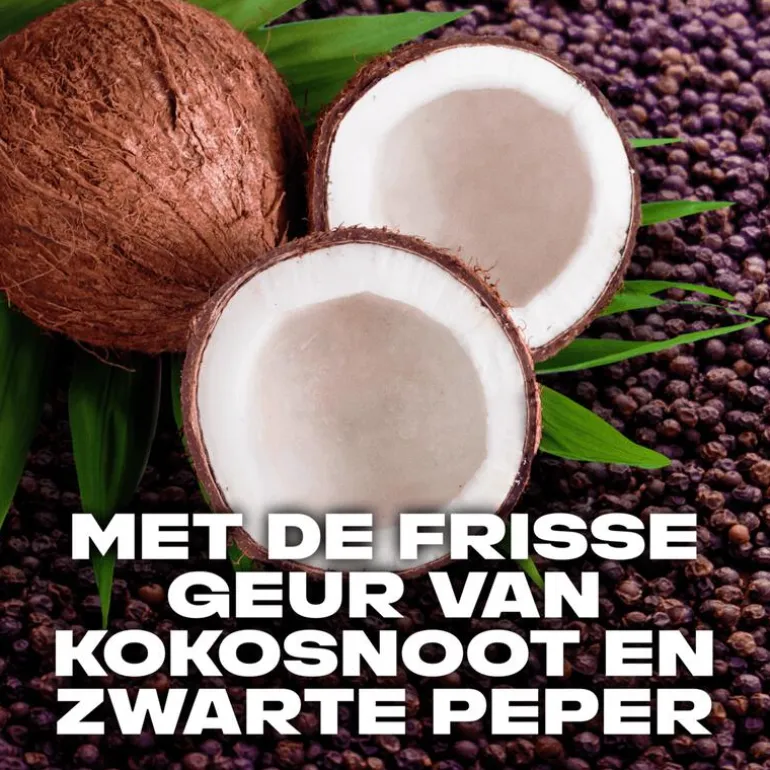 - Geniet 48 uur lang van de frisse geur van kokosnoot en zwarte peper