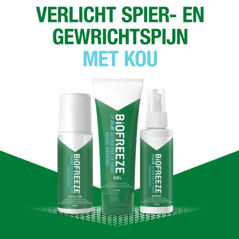 VERKOELENDE WERKING OM PIJN TE VERZACHTEN – Dankzij de verkoelende werking verzacht Biofreeze tijdelijk lichte spier- en gewrichtspijn bij artritis, rugpijn, verstuikingen, verrekkingen.