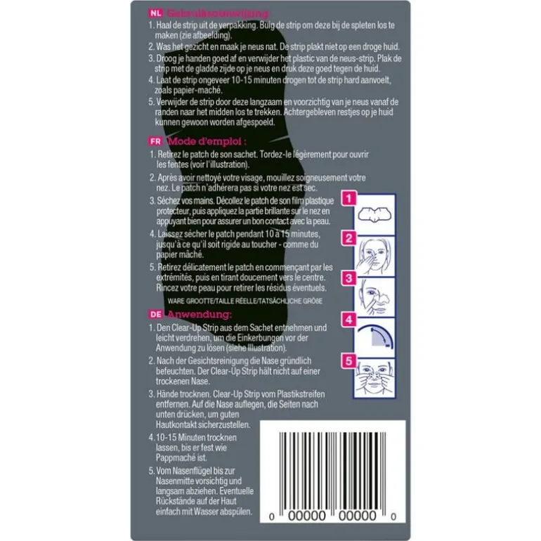 Stap 5: Verwijder de strip door deze langzaam en voorzichtig van je neus vanaf de randen naar het midden los te trekken. Achtergebleven restjes op je huid kunnen gewoon worden afgespoeld.