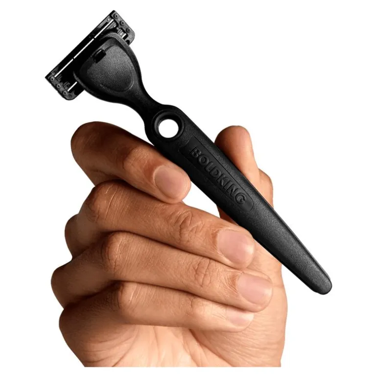 Boldking heeft héle, héle flexibele scheermesjes. En die flexibiliteit zorgt ervoor dat hun mesjes moeiteloos de rondingen van je gezicht en lichaam volgen, een scheermes voor elke plek op je lijf, dus! Daarnaast bestaat het scheermes uit drie mesjes, in plaats van de gebruikelijke vier of vijf mesjes. Hierdoor zit er extra ruimte tussen de mesjes, wat er voor zorgt dat het scheermes doet wat ‘ie moet doen – comfortabel scheren zonder getrek aan je haren. Ook zorgt de extra ruimte ervoor dat de mesjes lekker makkelijk schoonspoelen.
