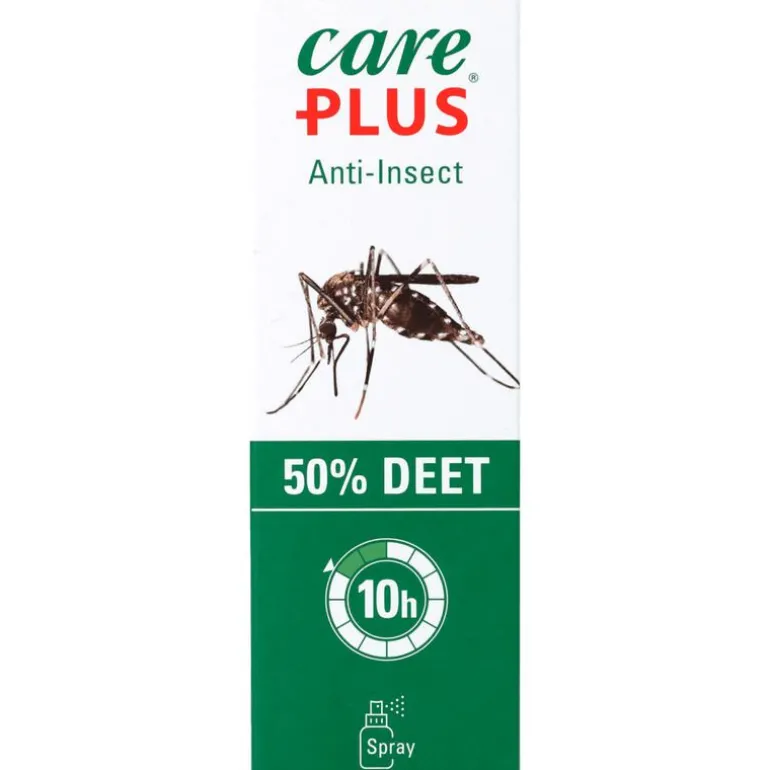 Care Plus Anti-Insect Deet Spray 50% is een insectwerend middel en draagt bij aan de bescherming van gemiddeld 10 uur tegen steken van huismuggen en Anopheles muggen, negen uur tegen steken van Aedes muggen en vijf uur tegen beten van teken. De spray bevat deet en de bittere en de reukloze stof Bitrex om de kans op doorslikken te voorkomen. Care Plus Anti-Insect Deet Spray 50% is geschikt vanaf 18 jaar en is geschikt voor alle bestemmingen.