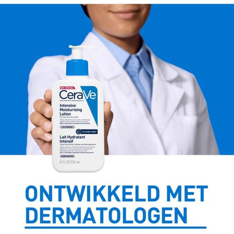 CeraVe Intensief Hydraterende Lotion is een verzorgingsproduct dat speciaal ontworpen is voor een droge tot zeer droge huid. De formule bevat drie essentiële ceramiden, sheaboter en de gepatenteerde MVE-technologie die samen voor een intensieve en langdurige hydratatie van de huid zorgen, en dit tot wel 72 uur lang. De romige textuur dringt eenvoudig door in de bovenste lagen van de epidermis, waardoor de Intensief Hydraterende Lotion jeuk door uitdroging kalmeert en een ruwe en schilferige huid opnieuw zacht maakt. De pH-gebalanceerde, hypoallergene formule is vrij van toegevoegde parfums en geschikt voor een gevoelige huid.