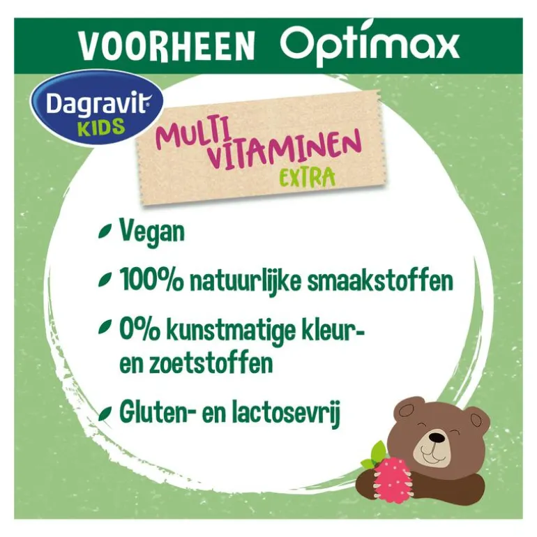 Dagravit, voorheen Optimax, vindt natuurlijk opgroeien belangrijk. Daarom maken wij onze voedingssupplementen met zo min mogelijk toevoegingen en zoveel mogelijk ingrediënten uit de natuur. De kauwtabletten zijn gemakkelijk in te nemen en bevatten vitaminen, mineralen en planten.