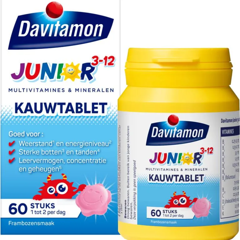 Davitamon Junior 3-12 Kauwvitamines Framboos is afgestemd op de specifieke behoeften van kinderen vanaf 3 jaar. Omdat groeien niet vanzelf gaat, is het belangrijk dat kinderen voldoende vitamines en mineralen binnen krijgen. Een voedingssupplement kan hierbij helpen. Door de verschillende vitamines en ingrediënten hebben deze tabletten een unieke werking. Zo zijn ze: