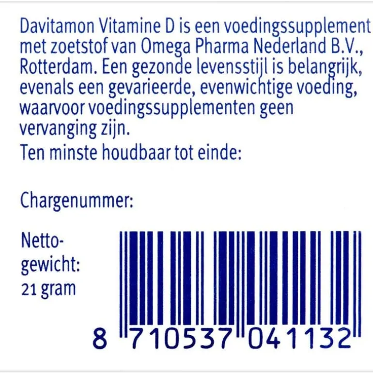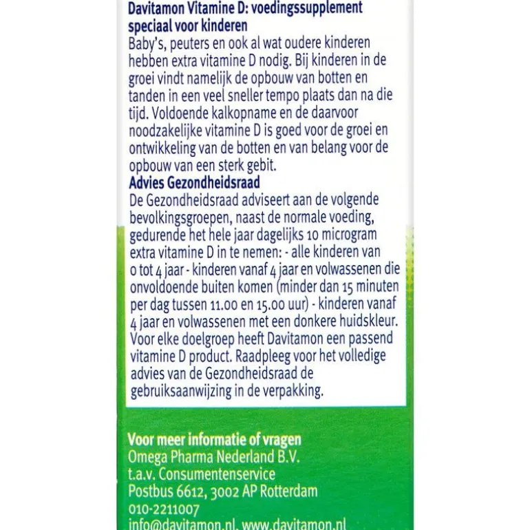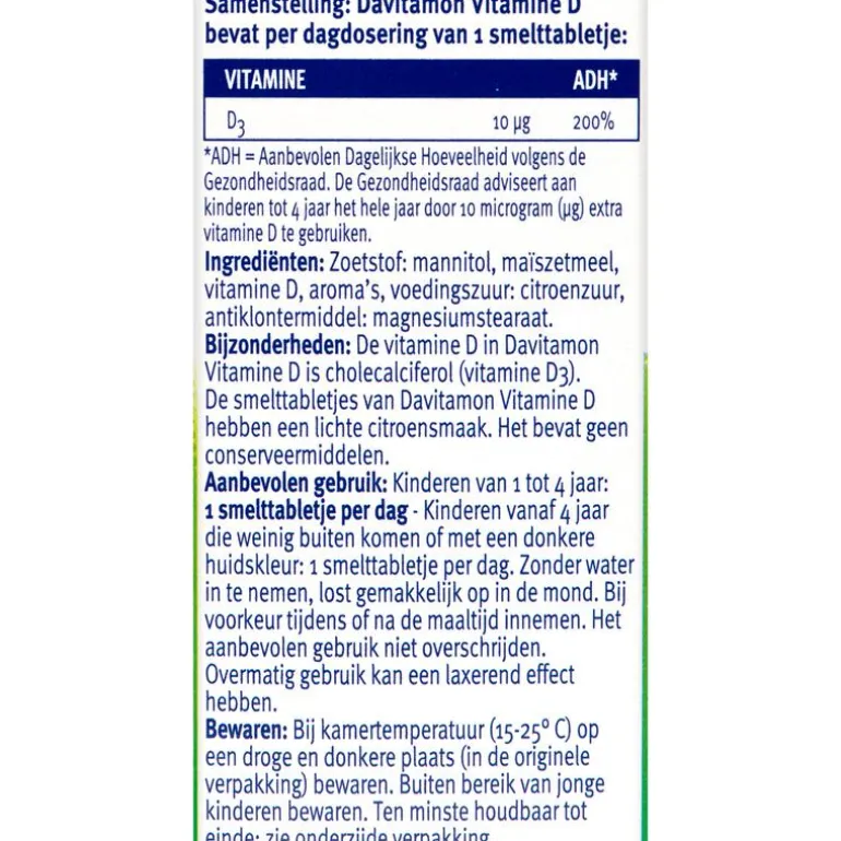 Davitamon Vitamine D Kind Smelttabletten zijn speciaal ontwikkeld voor kinderen. Bij kinderen in de groei vindt namelijk de opbouw van botten en tanden in een veel sneller tempo plaats dan na die tijd. En daar is vitamine D bij nodig. Davitamon Vitamine D Kind voorziet in 200% van de ADH vitamine D en is daarom: