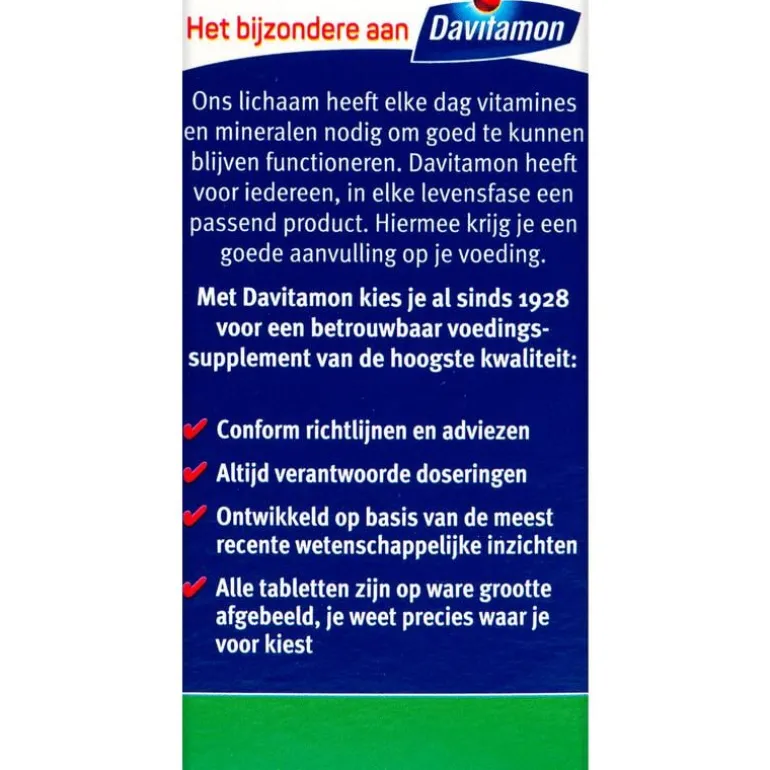 Om goed te kunnen blijven functioneren heeft ons lichaam elke dag vitamines en mineralen nodig. Daarom heeft Davitamon voor iedereen, in elke levensfase, een ander product. Zo krijg jij de juiste aanvulling op je voeding. Davitamon biedt al sinds 1928 betrouwbare voedingssupplementen aan van de hoogste kwaliteit.
