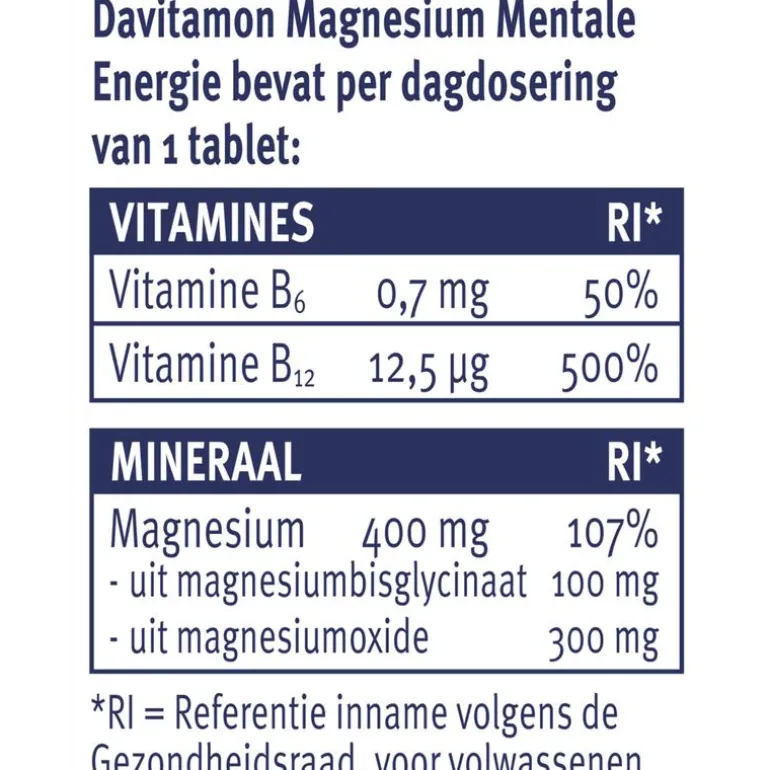 Vitamine B6 en B12 en magnesium draagt bij aan mentale energie en concentratie.