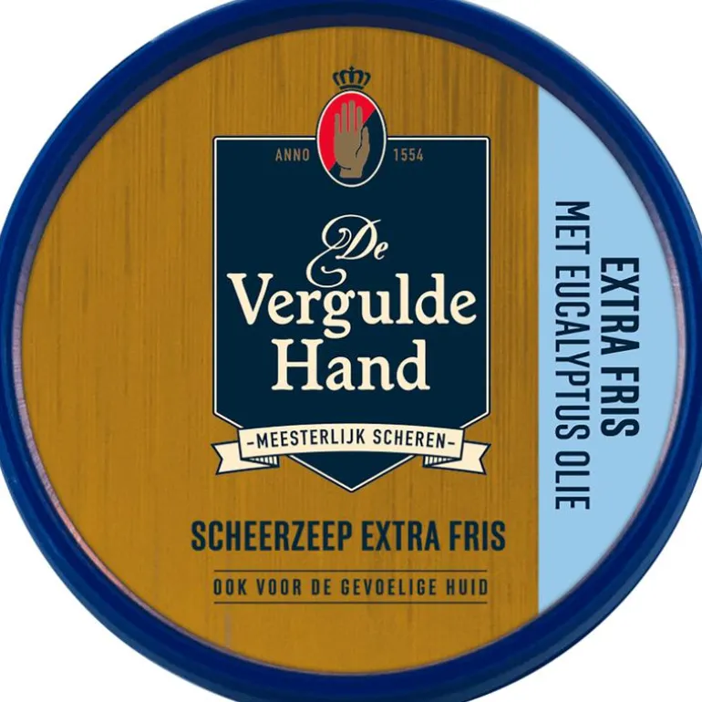 Naast de traditionele scheerzeep biedt De Vergulde Hand ook een scheerzeeptablet aan in extra frisse variant. De Scheerzeep Extra Fris is verrijkt met eucalyptus olie, voor een extra fris gevoel.