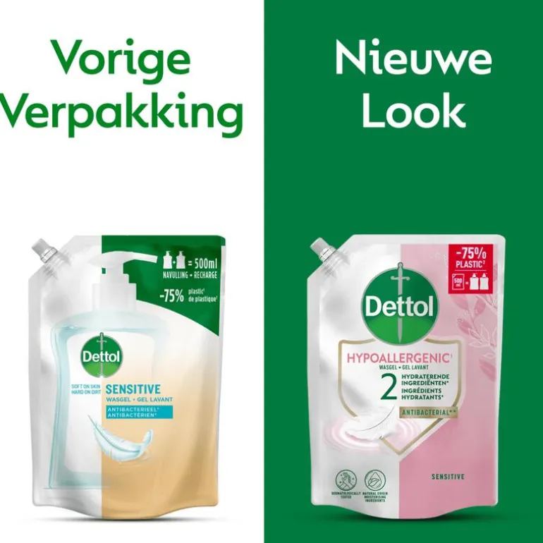 Dettol Hypoallergenic (Sensitive) wasgel navulling is verrijkt met twee hydraterende natuurlijke ingrediënten, die je huid intensief voeden. Deze wasgel is antibacterieel** en helpt de verspreiding van bacteriën te voorkomen. De dermatologisch geteste formule behoudt de natuurlijke pH-waarde van je huid en is geschikt voor gevoelige huid. 75% minder plastic in vergelijking met 2 flessen Dettol wasgel.