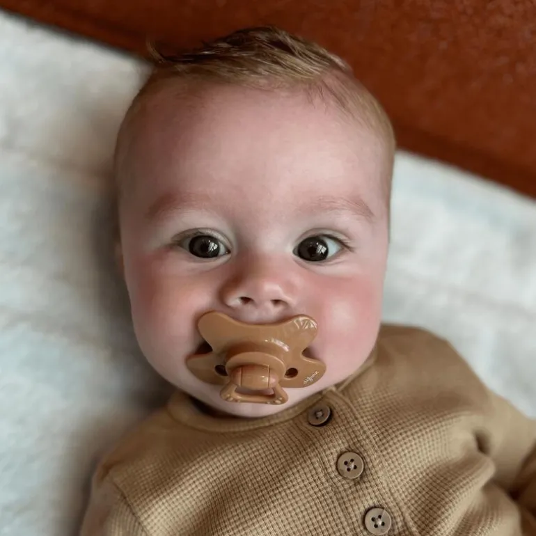 Deze unieke fopspeen heeft een vlindervormig schildje, waardoor de fopspeen mooi past op het gezicht van je baby. De neusuitsparing zorgt ervoor dat je baby vrij kan ademen door de neus. Door de gaatjes is er extra luchttoevoer, wat huidirritatie voorkomt.