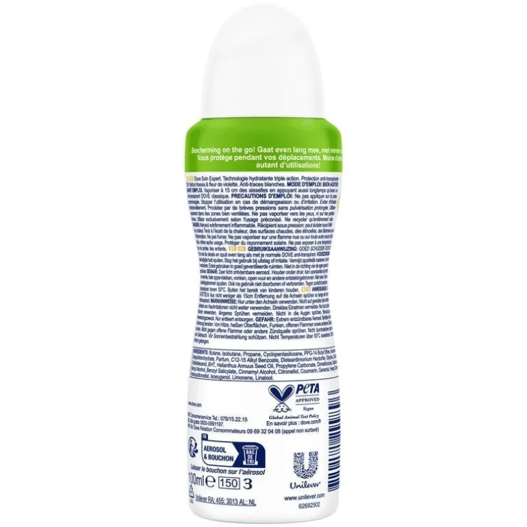 • Dove anti-transpirant deodorants dragen het PETA-approved keurmerk