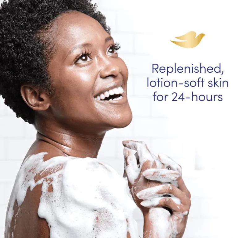 - Deze Dove-douchecrème is verpakt in een fles van 100% gerecycled plastic
