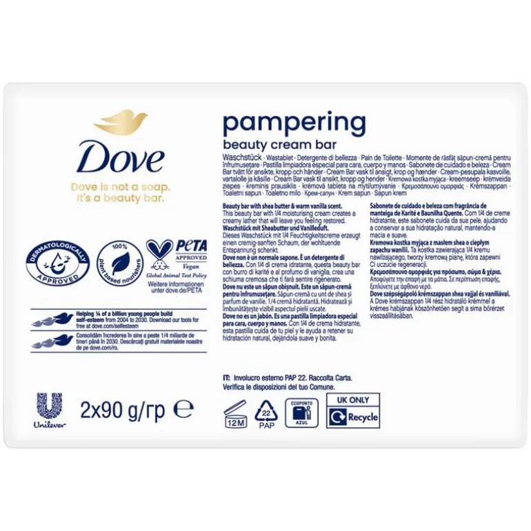 - Dove Pampering Beauty Cream Bar voedt en verzorgt je droge, doffe huid