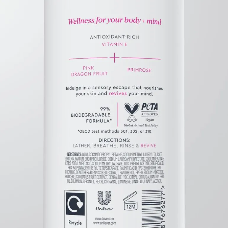 - Dove Body+Mind Pink Dragon Fruit & Primrose Serum douchegel met antioxidant vitamine E