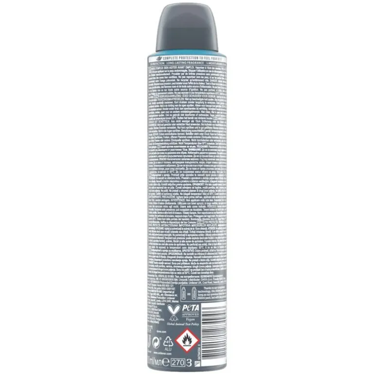 De Dove Men+Care Advanced Clean Comfort Anti-Transpirant Deodorant Spray beschermt 72 uur lang tegen zweet en geurtjes, heeft een langdurig frisse geur en verzorgt je oksels. Het bieden van bescherming komt op de eerste plaats bij deze anti-transpirant spray. Gemaakt met de revolutionaire Triple Action Technologie, is deze anti-transpirant ontworpen om je tot 72 uur lang tegen zweet en geur te beschermen. Met een frisse, mannelijke geur om je langdurig fris en zelfverzekerd te voelen. Deze Dove Men+Care anti-transpirant is verrijkt met onze unieke ¼ hydraterende crème, die je okselhuid verzorgt. Irritaties door zweet en scheren behoren tot het verleden. Je krijgt een gehydrateerde en beschermde huid en gladde, comfortabel aanvoelende oksels. Dankzij de Compressed-technologie gaat deze kleine spuitbus van 150 ml net zo lang mee als de Dove Men+Care spuitbus van 200 ml, maar dan met minder verpakking. Bescherming tegen zweet en geur: Deze effectieve anti-transpirant zorgt ervoor dat je je de hele dag beschermd voelt, zelfs op de heetste dagen. De anti-transpirant voor mannen is geformuleerd met de revolutionaire Triple Action Technologie om je tot wel 72 uur tegen zweet en geur te beschermen. Langdurige frisheid: Droge oksels geven je de hele dag comfort, maar een langdurige geur geeft de hele dag een fris gevoel. Met een zachte linnen geur geeft deze anti-transpirant deodorant je een schoon gevoel vanaf het moment dat je het aanbrengt. Superieure verzorging: Deze anti-transpirant deodorant is verrijkt met 1/4 hydraterende crème en hydrateert en voedt de oksels. Je zult voelen dat het vanaf de eerste keer gebruik zorgt voor gladde, comfortabel aanvoelende oksels.