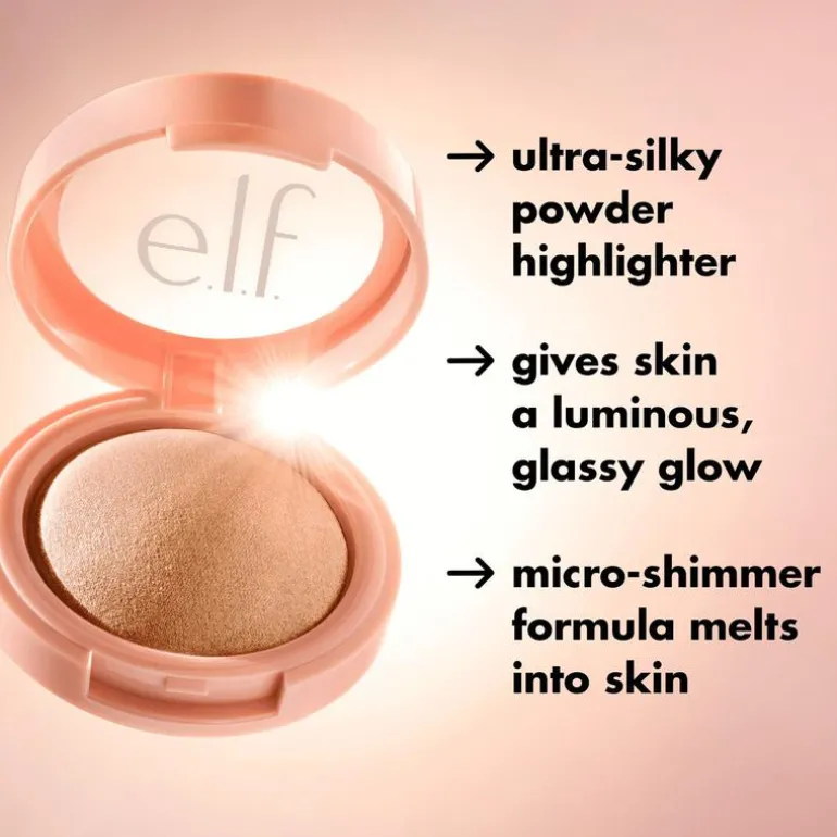 Geef je gezicht een stralende gloed met de Halo Glow Silky Powder Highlighter van e.l.f. Cosmetics, een ultrazachte poederhighlighter die je in de kijker zet. Het zit boordevol fijngemalen micro-shimmers die makkelijk in je huid blenden voor een zijdezachte, langhoudende, gloed van binnenuit. Deze soepele en fluweelzachte formule klontert niet, brokkelt niet en kan prachtig over e.l.f. Halo Glow Highlight Beauty Wand worden aangebracht voor een lichtreflecterende gloed. ●Ultrazachte, lichtjes aan te brengen poederhighlighter met een stralende finish ●Fijngemalen micro-shimmers die makkelijk in je huid blenden alsof je van binnenuit straalt ●Langhoudende formula die niet klontert en niet brokkelt en niet vettig aanvoelt ●Kan prachtig over e.l.f. Halo Glow Highlight Beauty Wand worden aangebracht voor een stralende gloed ●100% vegan, e.l.f. heeft twee cruelty-free certificaten van Leaping Bunny en PETA