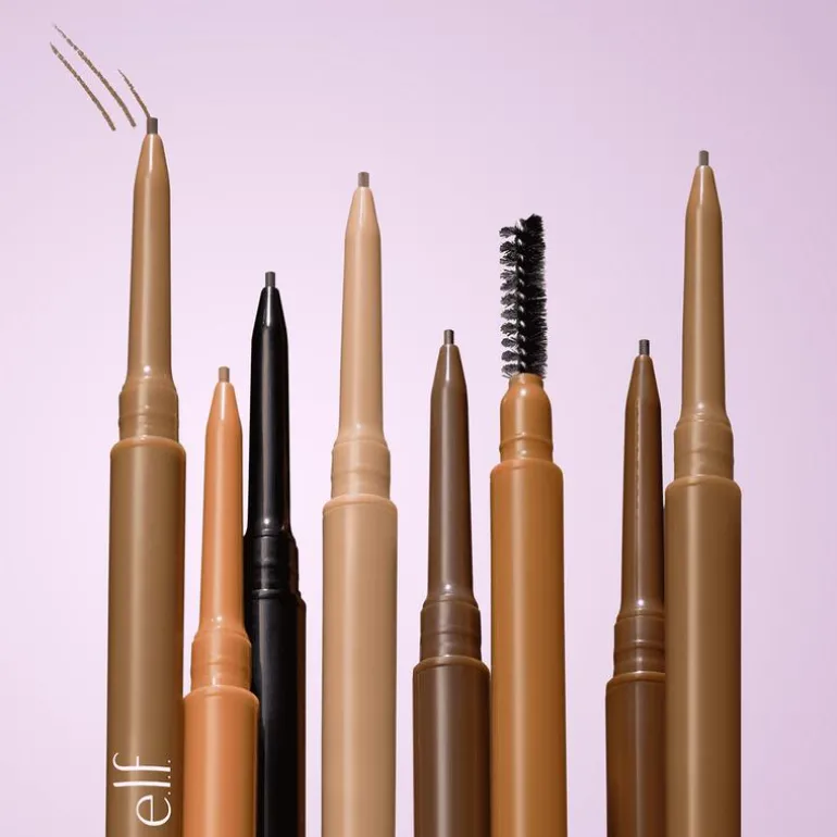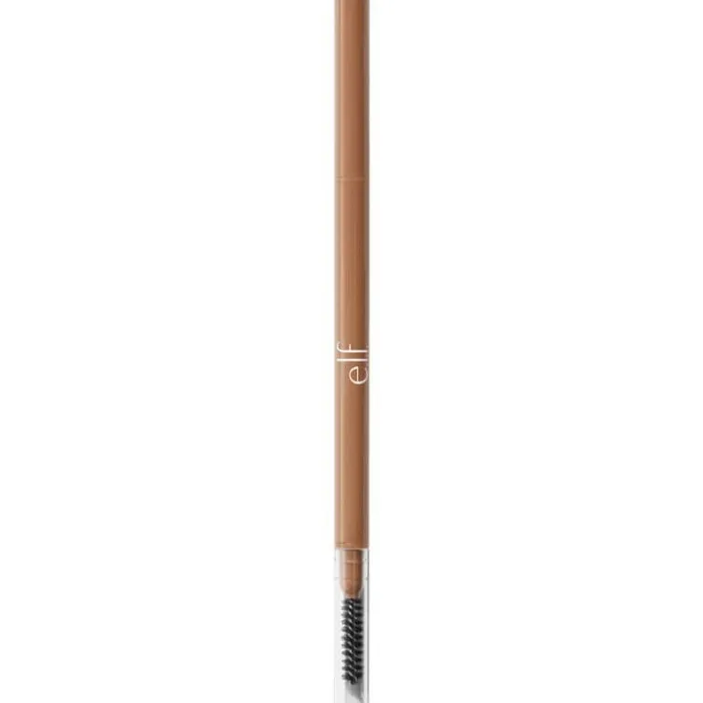 Een slank wenkbrauwpotlood met een microfijne punt voor moeiteloze precisie en een natuurlijke finish • Wenkbrauwpotlood met microfijne precisie om de puntjes en uiteinden van je wenkbrauwen te accentueren en bij te werken, voor een precieze, maar toch natuurlijke finish • Wenkbrauwpotlood met twee uiteinden, met aan de ene kant een mini-punt van 1 mm (de kleinste die we ooit hebben gemaakt!) voor een natuurlijke gevederde look, en aan de andere kant een borsteltje om je wenkbrauwen in model te brengen en te verzorgen • Het zachte, romige pigment glijdt moeiteloos over je wenkbrauwen, zodat je het makkelijk kunt aanbrengen • Langhoudende, waterproof formule, zonder knoeien Werk je wenkbrauwen uiterst nauwkeurig bij met het e.l.f-precieze, waterbestendige Micro-Fine Brow Pencil van e.l.f. Cosmetics. Je kunt je puntjes en uiteinden accentueren voor een gevederde, natuurlijke finish. Dit fijne wenkbrauwpotlood heeft twee uiteinden, met aan de ene kant een punt van 1 mm (de kleinste die we ooit hebben gemaakt) en met een zacht, romig pigment dat makkelijk over je wenkbrauwen glijdt en haarfijne lijntjes creëert die lang blijven zitten. Het andere uiteinde heeft een stevige spoolie waarmee je je wenkbrauwen precies zo kunt stylen en in model kunt brengen als je wilt. Vegan en cruelty-free Bij e.l.f. is schoon nog schoner: op eigen initiatief hebben we méér dan de door de EU Cosmetic Regulation vereiste 1600 ingrediënten gecanceld. e.l.f. is trots op de samenwerking met Fair Trade USA™ en de productie in Fair Trade Certified™ fabrieken. Let op het Fair Trade Certified™ zegel op je e.l.f. product! e.l.f. maakt zich sterk voor elk oog, lip, gezicht, poot en vin.
