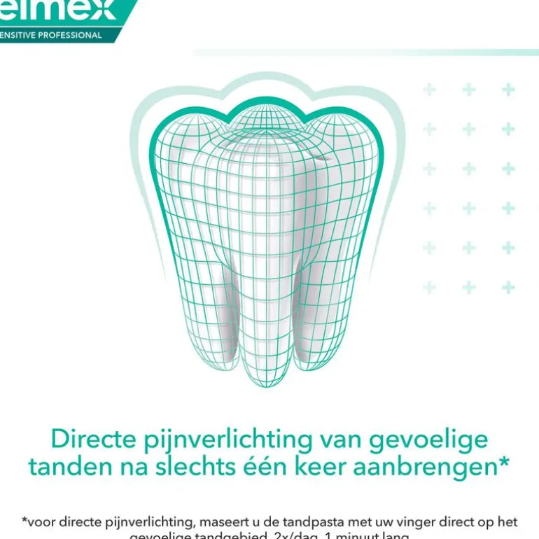 De elmex® Sensitive Professional tandpasta geeft directe* en langdurige pijnverlichting bij gevoelige tanden. Een exclusieve formule die is gebaseerd op de klinisch bewezen PRO-ARGIN® technologie die tandartsen hun patiënten adviseren om de pijn van gevoelige tanden te verzachten.