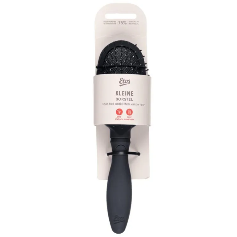 De Etos Kleine Borstel is de perfecte compacte oplossing voor het snel en eenvoudig stylen van je haar, waar je ook bent. Deze ovale borstel is voorzien van stevige metalen pennen met omhulde nopjes, zodat je haar tijdens het borstelen niet statisch wordt. Dankzij het kleine formaat past deze borstel gemakkelijk in je tas, waardoor je altijd een handige stylingtool bij de hand hebt.