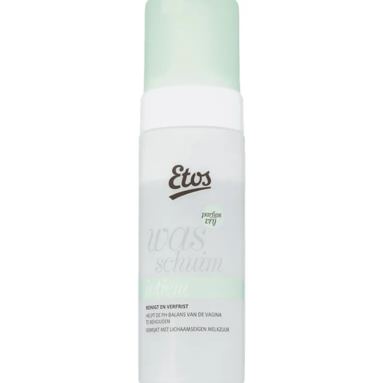 Etos Intiem Wasschuim 150 ml is voor de dagelijkse uitwendige reiniging van de vagina. Door toevoeging van lichaamseigen melkzuur helpt dit wasschuim de zuurgraad (pH) van de vagina in balans te houden. Dit product