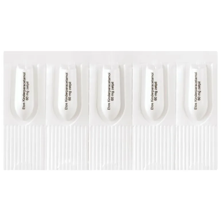 Etos Kinderparacetamol 60 mg zetpil kan je gebruiken bij kinderen van 3 maanden tot 1 jaar (lichaamsgewicht 3,0 – 5,5 kg). Etos Kinderparacetamol 60 mg behoort tot de groep van medicijnen met een pijnstillende en koortsverlagende werking.