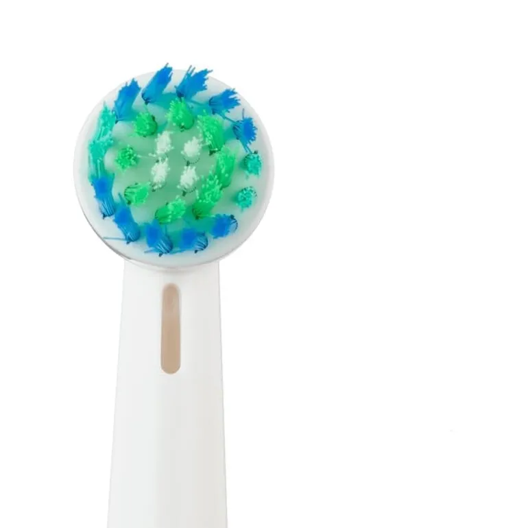De borstelharen vervagen van kleur, zodat je er op tijd aan herinnerd wordt de opzetborstel te vervangen. De opzetborstel na elk gebruik goed afspoelen met lauw water en vervolgens droogmaken. Tandartsen adviseren de opzetborstel elke 2 à 3 maanden te vervangen.