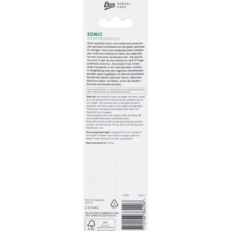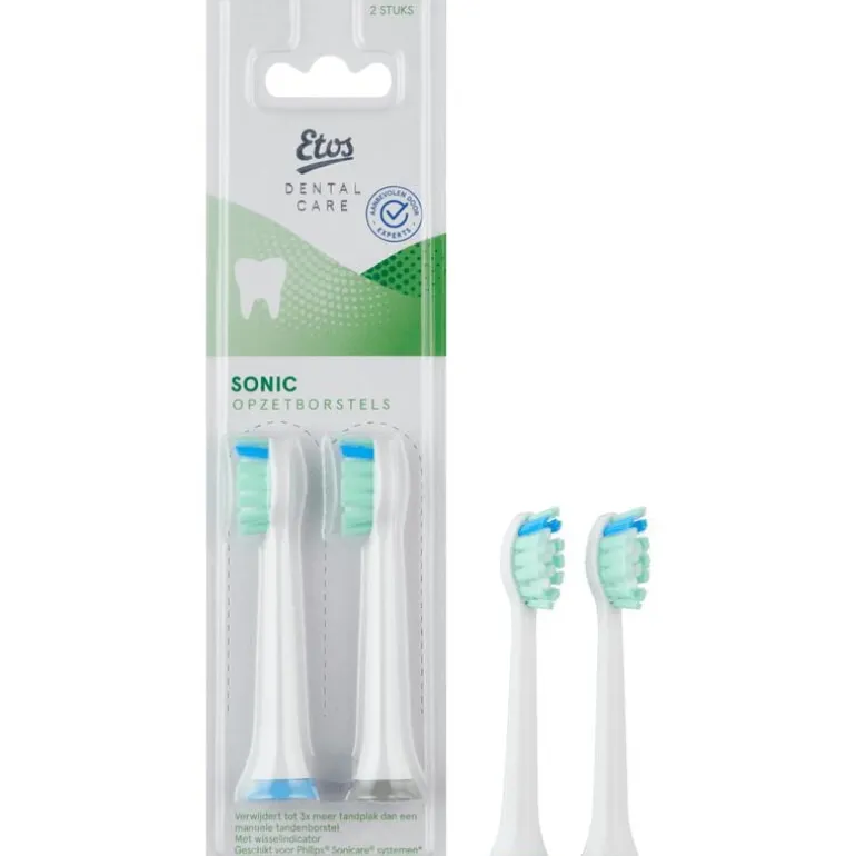 Etos Sonische opzetborstels voor elektrisch poetsen zijn speciaal ontwikkeld om het gebit optimaal te reinigen.