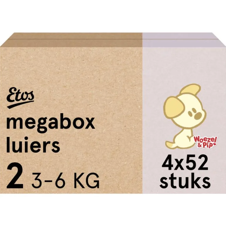 Etos Woezel & Pip Luiers hebben een exclusief Woezel & Pip design. In de verpakking zitten 2 verschillende soorten designs. Met de aankoop van Etos Luiers steunt u het Guusje Nederhorst fonds.
