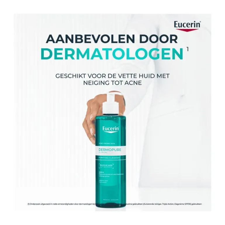 “Tweemaal per dag aanbrengen op de natte huid voor het DERMOPURE CLINICAL verzorgende product. Geschikt voor gezicht en lichaam. Kan als aanvulling op een medische behandeling tegen acne worden gebruikt. Vermijd contact met de ogen.”
