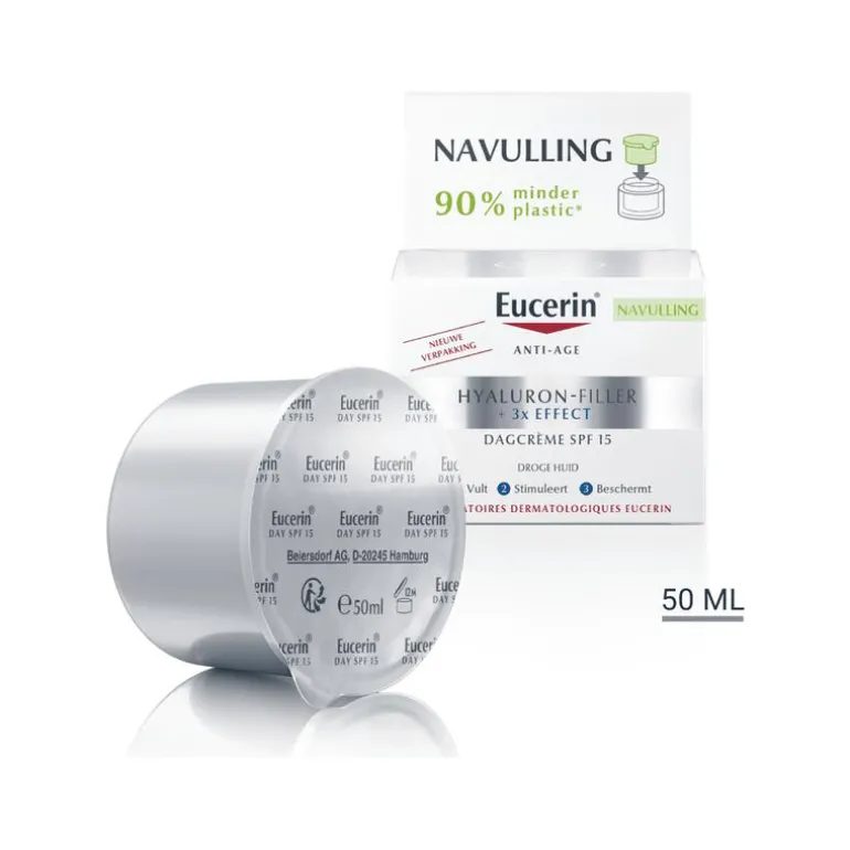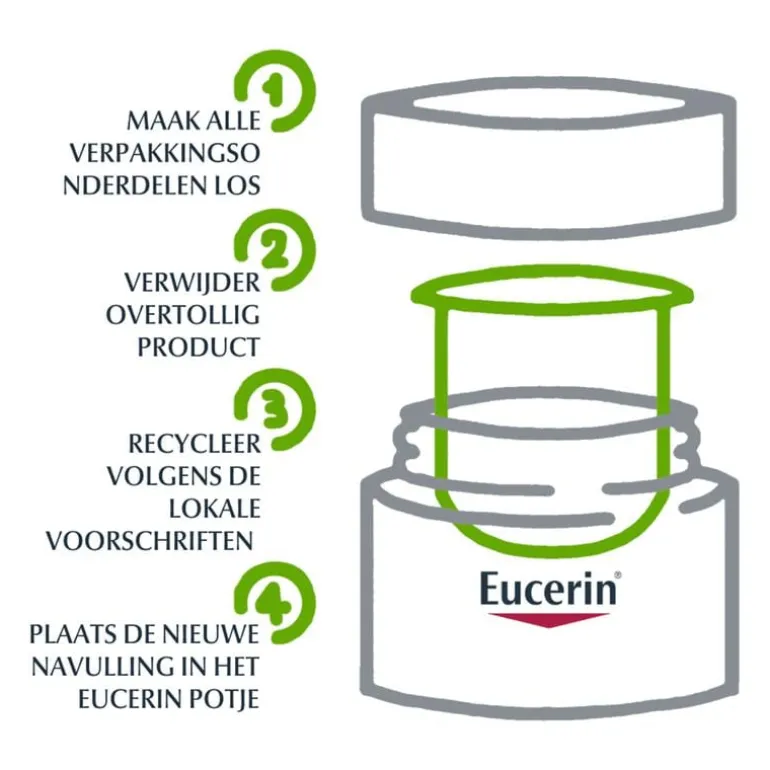 *Bevat 90% minder plastic dan de reguliere Hyaluron-Filler potjes. Door gebruik te maken van deze navulling helpt u mee om plastic afval te verminderen. Te gebruiken voor alle Eucerin gezichtsverzorgings potjes.