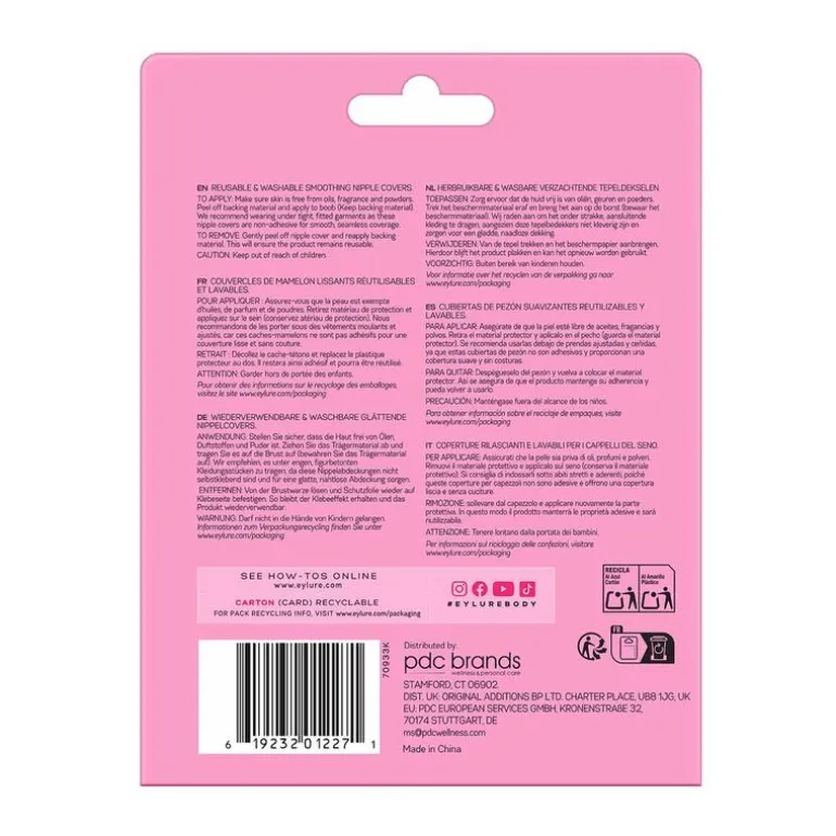 Nipple covers van Eylure London zijn herbruikbaar, waterbestendig en ontworpen voor een gladmakende, naadloze dekking. Ze zijn niet plakkerig, maar blijven goed op hun plek zitten (“grippy, not sticky”) en kunnen meer dan 10 keer worden gedragen.