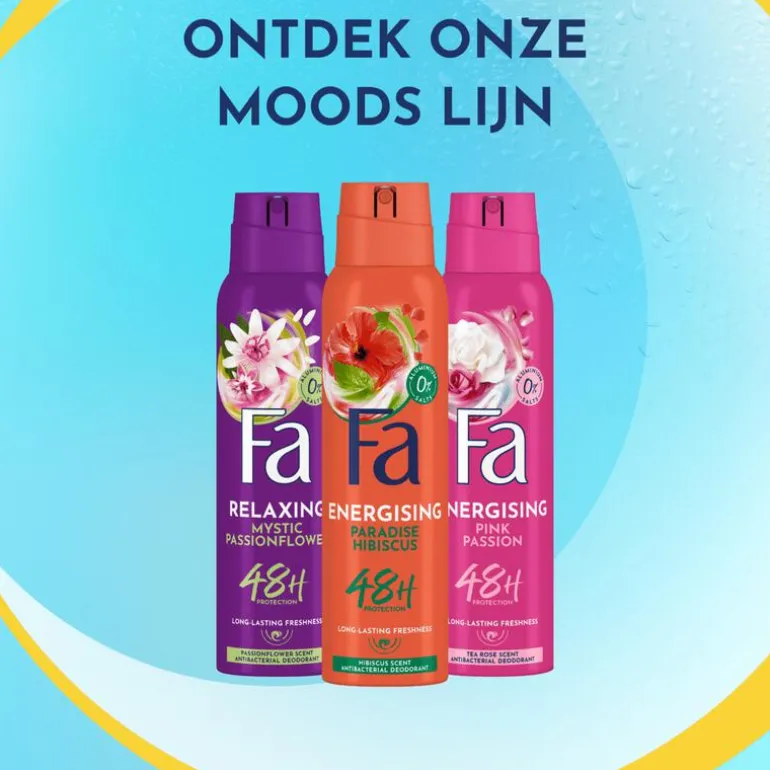 Ontdek Fa Paradise Hibiscus deodorant spray met de geur van Hibiscusbloem. De vegan formule biedt 48 uur bescherming tegen nare geurtjes en is vrij van aluminiumzouten.