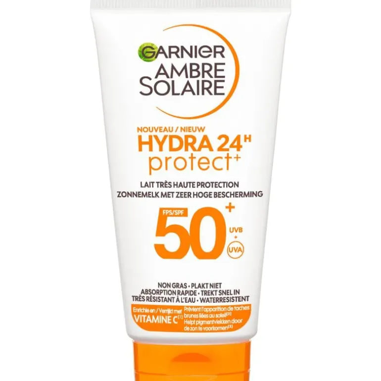 Ambre Solaire Hydra 24H Protect SPF 50+ reisformaat is een zonnebrandcrème met vitamine Cg die zeer hoge bescherming biedt tegen UVA- en UVB-stralen. De beschermende zonnemelk helpt tekenen van huidveroudering door de zon te voorkomen en hydrateert 24 uur lang.