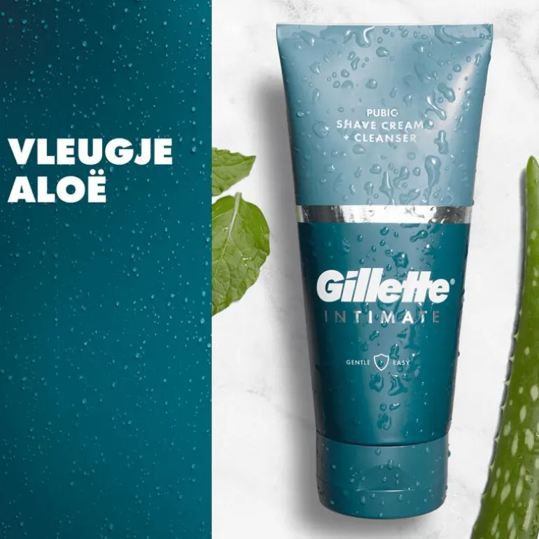 - Gillette 2-in-1 scheercrème + reiniger voor de intieme zone: ontwikkeld om de schaamstreek te beschermen tegen scheerirritaties