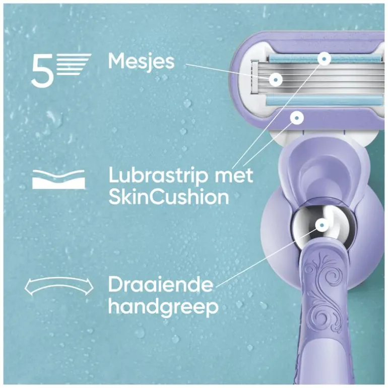 - 5 mesjes en een Flexiball-handvat: Volgt de rondingen van je lichaam voor een zachte en gladde scheerbeurt zonder haartjes te missen