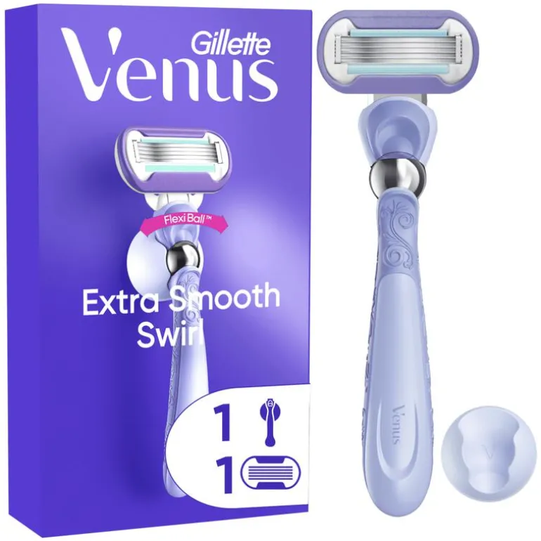De Gillette Venus Deluxe Smooth Swirl-scheersystemen voor vrouwen zorgen voor een langdurig gladde huid.