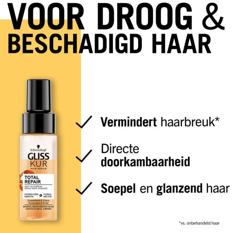 Schwarzkopf Gliss Anti-klitspray Total Repair 70ml – Gliss Anti-klitspray voor droog haar en beschadigd haar.