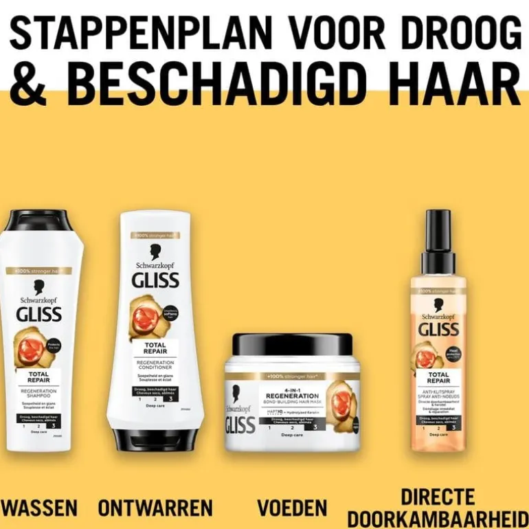 - Gliss Care Level: 3 – Intense verzorging, met diep herstellende formules met hoogwaardige ingrediënten.