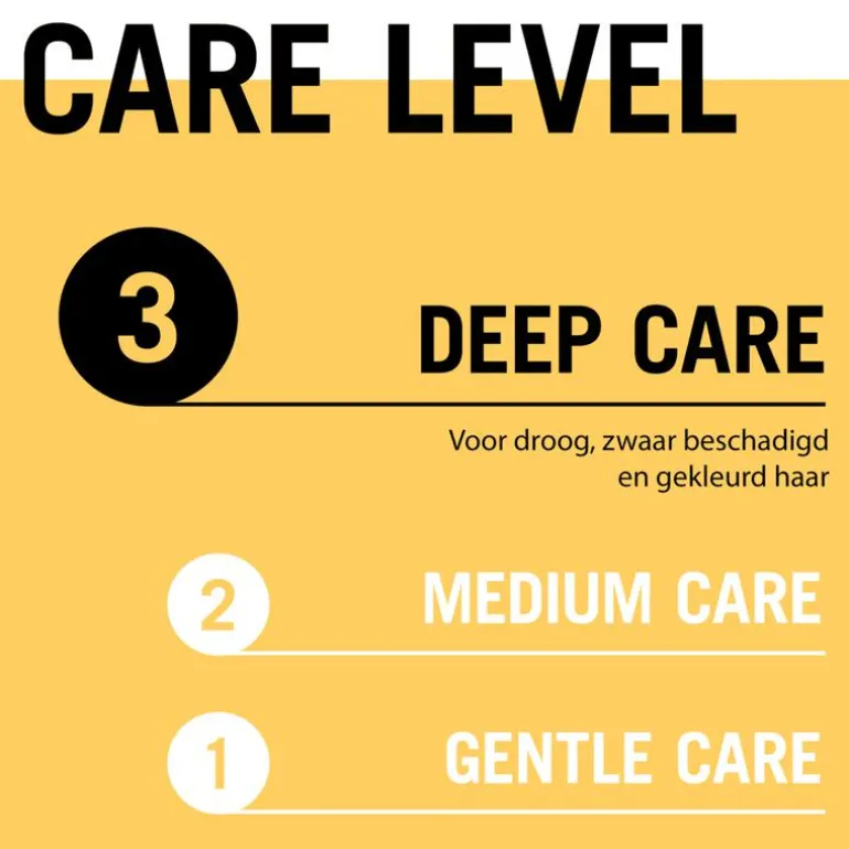 - Gliss Care Level: 3 – Intense verzorging, met diep herstellende formules met hoogwaardige ingrediënten.