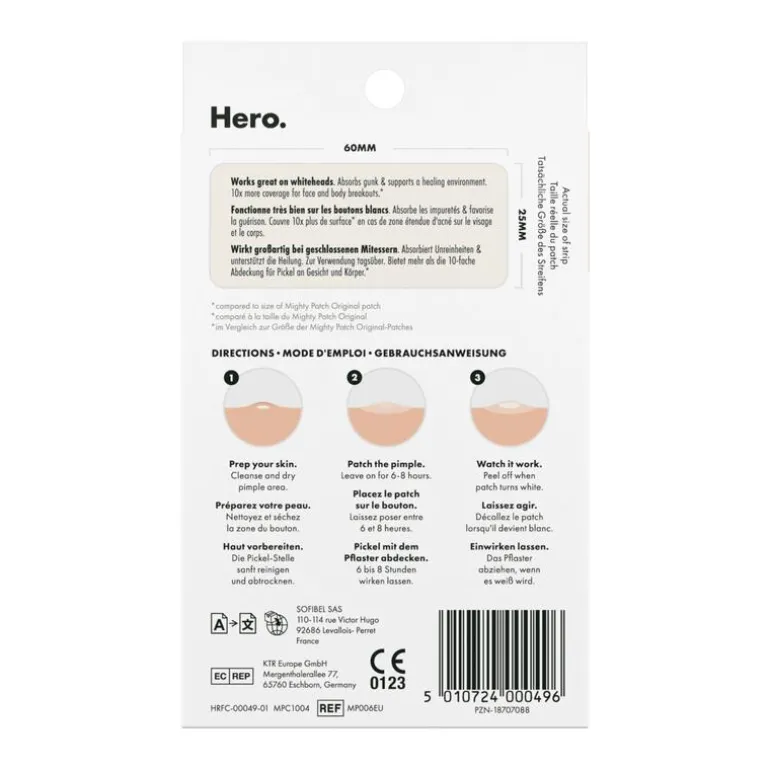 Wanneer een gewone patch niet voldoende is, biedt Mighty Patch Surface de enige hydrocolloïde strip in jumbo-formaat die grote uitbraakgebieden bedekt en binnen enkele uren zichtbare vermindering van clusteruitbraken geeft.