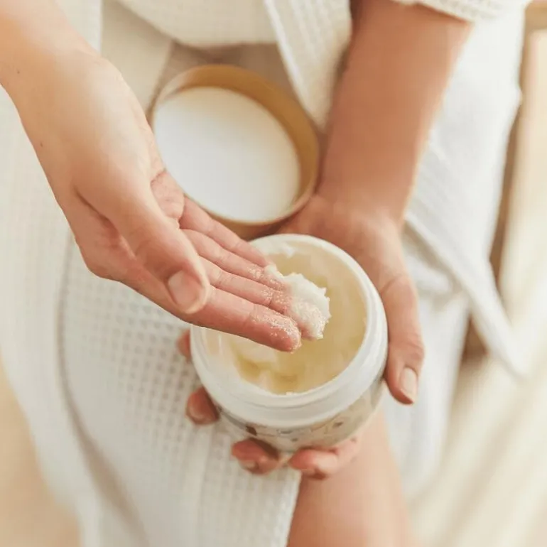 Breng de scrub aan op gereinigde vochtige huid. Zachtjes masseren en verwijder zo de dode huidcellen. Afspoelen met warm water voor een intens zachte en verzorgde huid.