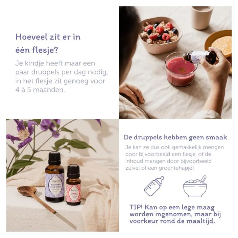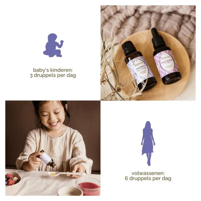 In deze vitamine D druppels baby zitten voldoende vitamines om het advies van de Gezondheidsraad met betrekking tot de ADH oftewel de ‘Aanbevolen Dagelijkse Hoeveelheid’ aan vitamines D* op te volgen.