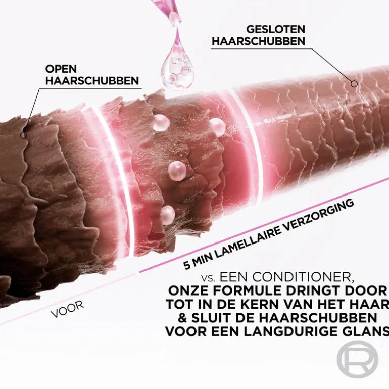 - Klinisch bewezen: dit haarmasker zorgt voor twee keer meer glans, met blijvende resultaten, tot 10 beurten lang. Voor tot 85% gezonder en 88% zachter haar!