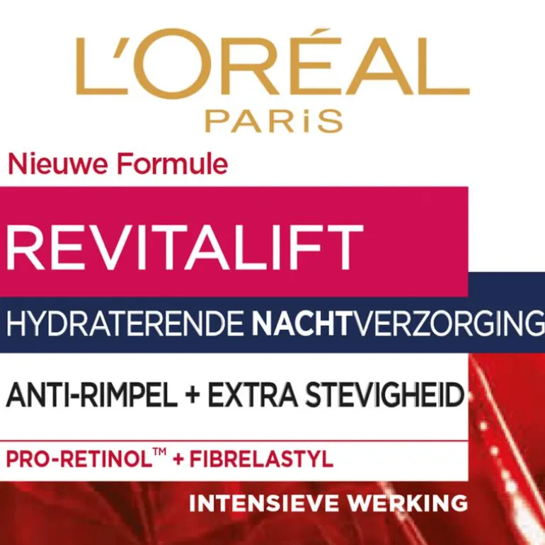 De anti-rimpel nachtcrème van Revitalift hydrateert en verstevigt de huid. Het is een ideale eerste anti-aging nachtcrème, voor vrouwen vanaf 30 jaar. Dankzij de samenstelling van Fibrelastyl en Pro-retinol A, biedt deze formule een effectieve werking tegen alle soorten rimpels: de rimpels worden in de kern aangepakt en de veerkracht van de huid wordt zichtbaar verbeterd.