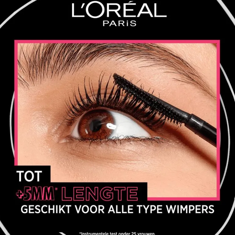 Wil jij langere, vollere, gelifte en extra zwarte wimpers? Ontdek de nieuwe Telescopic Lift Extra Black mascara van L’Oréal Paris! Deze mascara zorgt voor +5mm* lengte, direct volume en lift. Het innovatieve borsteltje heeft pinnetjes met een dubbel haakje aan het einde. Deze haakjes pakken elk wimperhaartje vast en geven jouw wimpers zo lengte, volume en lift tot 36 uur lang.** Geen zorgen over vegen of vlekken: deze mascara geeft de hele dag niet af. De formule voelt de hele dag comfortabel en licht aan op de wimpers en is verrijkt met ceramidencomplex. Ceramide werkt als een natuurlijk cement wat de wimpers verzorgt en versterkt. De mascara is makkelijk in gebruik en laat je wimpers er dikker en voller uitzien. Ook zorgt deze mascara voor een mooie spreiding van de wimpers. Zo creëer je gemakkelijk veel volume, zonder klontjes. Voor het mooiste effect kan je deze mascara het beste in 2 stappen aanbrengen. Gebruik eerst de bolle kant van het borsteltje om je wimpers te liften. Vervolgens kam je jouw wimpers met de haakjes aan de zijkant van het borsteltje voor separatie, volume en lengte. Makkelijk te verwijderen. Geschikt voor alle type wimpers, gevoelige ogen en dragers van contactlenzen. De formule is vegan en bevat geen ingrediënten of bijproducten van dierlijke oorsprong. *Instrumentele test onder 25 vrouwen **Zelfevaluatie, 111 vrouwen