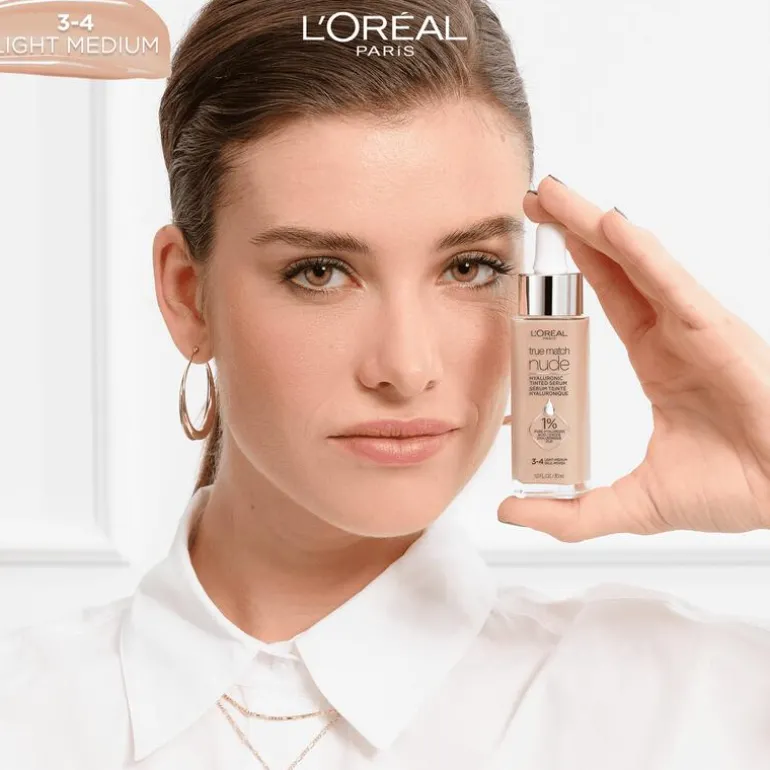 Het L’Oréal Paris True match Nude Volumegevend getint serum is nu verrijkt met micro epidermale hyaluronzuur, een ingrediënt dat extra goed wordt opgenomen door de opperhuid. Het resultaat? De formule kan nog beter helpen de huid te verbeteren en laat deze er voller uitzien in slechts 1 uur*! Met dit product kun je je de voordelen van een huidverzorgingsserum combineren met de dekking van een foundation. Direct na het aanbrengen ziet de huid er stralender en egaler uit. De formule voelt licht aan op de huid en geeft een natuurlijk resultaat. True Mach Nude helpt de huid zichtbaar te verbeteren: onmiddelijk en na verloop van tijd. Het laat de huid er in 1 uur* voller uitzien waardoor fijne lijntjes minder zichtbaar zijn. Daarnaast hydrateert het de huid 24uur** lang. De formule bevat niet alleen hyaluronzuur maar ook glycerine. Hyaluronzuur trekt vocht aan en glycerine zorgt dat het beter door de huid wordt vastgehouden. Na 4 weken gebruik ziet de huid er gladder uit en heeft deze minder droge plekjes. De formule is non-comedogeen, dit houdt in dat de formule de poriën niet verstopt en geschikt voor de gevoelige huid. *Klinische score, 84 personen. ** Instrumentele test Tip: Probeer ook L’Oréal Paris Lumi glotion. Deze kan je aanbrengen over je make-up voor een gloweffect op een gedeelte van je gezicht.