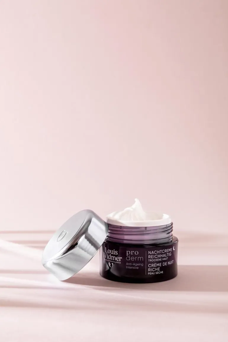 Louis Widmer proderm Nachtcrème Rijke Textuur is een anti-ageing nachtcrème die de huid voedt en regenereert.