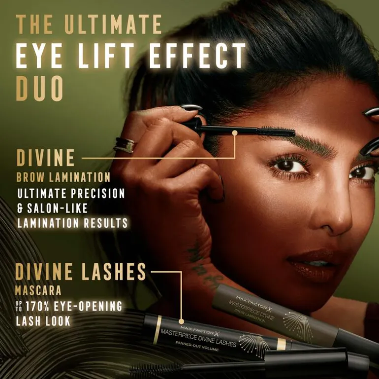Creëer een oogliftend effect door je wenkbrauwen te separeren, liften en lamineren met de nieuwe Max Factor Masterpiece Divine Brow Lamination Gel.